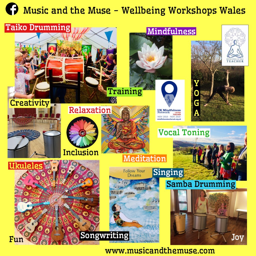With the combined skills of our group, we can teach taiko drumming, samba drumming, creative percussion and ukuleles, a cappella singing and songwriting, we provide creative writing workshops, yoga and mindfulness events, OR ANY COMBINATION OF THESE…